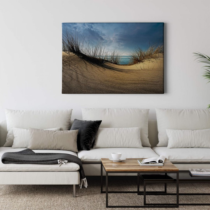 Der Blick auf die idyllische Strandlandschaft übt eine magische Anziehungskraft aus. Die abgeschiedene Dünenlandschaft ermöglicht eine Auszeit zum Entspannen und Kraft tanken. Neben der bezaubernden Darstellung überzeugt das Leinwandbild durch hochwertige Materialien und satte Farben. Zusammen mit den ausgewählten Komponenten entsteht eine besondere Wanddekoration. Unsere Leinwandbilder auf Baumwoll-Leinwand bieten besonders hochwertige Bilder in gestochen scharfer Optik und mit grosser Leuchtkraft. Die Leinwände werden von Hand auf die Holzrahmen aufgezogen, sodass das stabile Bild jahrelang hält.