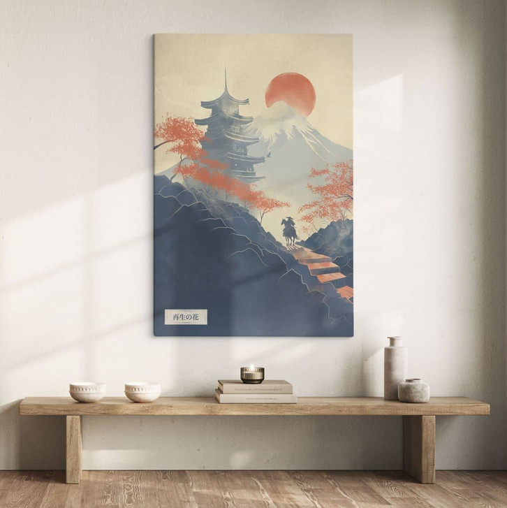 Dieses Kunstwerk lädt dazu ein, eine Auszeit von der Hektik des Alltags zu nehmen und die zeitlose Schönheit Japans zu geniessen. Ob als Blickfang im Wohnzimmer, als inspirierendes Element im Arbeitszimmer oder als beruhigende Dekoration im Schlafzimmer – dieses Leinwandbild fügt sich mühelos in jeden Raum ein.