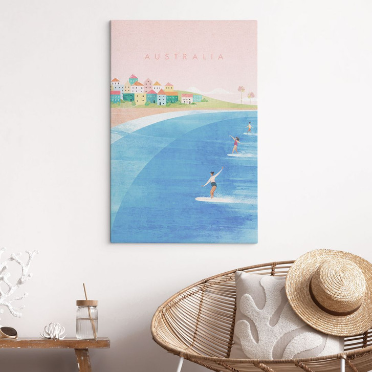 Dieses Leinwandbild von Henry Rivers fängt die Essenz der australischen Küste mit einer minimalistischen, aber charmanten Darstellung von Surfern und farbenfrohen Strandhäusern ein. Die sanften Farben und klaren Linien verleihen dem Bild eine beruhigende Aura, die den entspannten australischen Lebensstil widerspiegelt. Das auf hochwertiger Leinwand gedruckte Kunstwerk bringt die Schönheit und Leichtigkeit eines sonnigen Tages am Meer in dein Zuhause und eignet sich perfekt für jeden Raum, der einen Hauch von Sommer und Freiheit braucht.