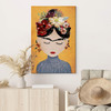 Frida Kahlo mit Blumen im Haar – auffälliger Leinwanddruck im Porträtstil