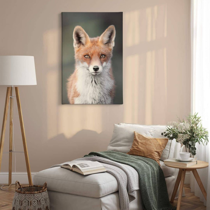 Die Gestaltung eines Kinderzimmers ist wichtig für die Entwicklung des Kindes. Hier spielen, toben und lernen Kinder den ganzen Tag. Mit dieser Tierdekoration werden Kinder gerne Zeit in ihrem Zimmer verbringen. Das Foto des Künstlers van Duijn zeigt einen Fuchs mit gespitzten Ohren, der den Fotografen mit seinen gelben Augen aufmerksam ansieht.