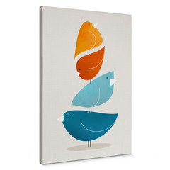 Leinwandbild Vögel vor der pfirsichfarbenen Sonne - Kubistika