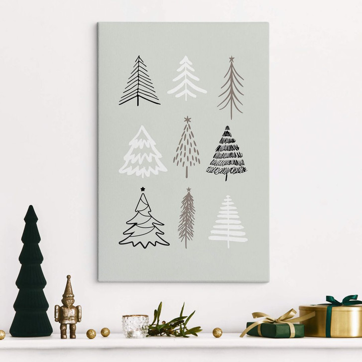 Verpasse deinem Zuhause den letzten Schliff! Dieses Wandbild schafft eine festliche Atmosphäre. Belebe deine Wände zur Weihnachtszeit – mit unserem Wandbild kannst du im ganzen Raum eine besinnliche Stimmung erzeugen. Die abgebildeten Tannen sorgen auch im Winter und besonders zu Weihnachten für eine gemütliche Atmosphäre. Das minimalistische Design als Leinwandbild ist schnell aufgehängt und zaubert einen tollen Winterlook in dein Zuhause. Beeindruckend schön: Dieses Porträt-Leinwandbild wertet deine Inneneinrichtung im Handumdrehen auf. Das Wintermotiv in Grautönen ist auf robuste Leinwand gedruckt. Die hohe Farbbrillanz lässt das Bild hochwertig und lebendig wirken. Dich erwartet ein Bild in höchster Qualität – überzeuge dich selbst!