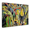 Möchtest du dein Zuhause aufpeppen? Wir bieten eine grosse Auswahl an dekorativer Wandkunst, die dich glücklich machen wird. Der Künstler Zamart entführt dich direkt in einen abstrakten und farbenfrohen Dschungel. Ein exotischer Tukan sitzt auf einem Ast.