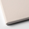 Schiebe die Halterung vorsichtig mit der gezackten Seite nach oben zwischen Leinwand und Holzrahmen.
