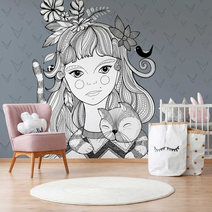 Livingwalls Fototapete ARTist Catgirl blau, schwarz, violett, weiss