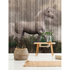 Diese Tapete hat eine optische Oberflächenstruktur in Holzpaneeloptik.