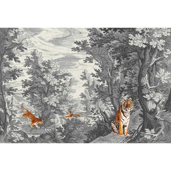 Livingwalls Fototapete Walls by Patel 3 Fancy Forest 2 grau, orange, weiss, schwarz