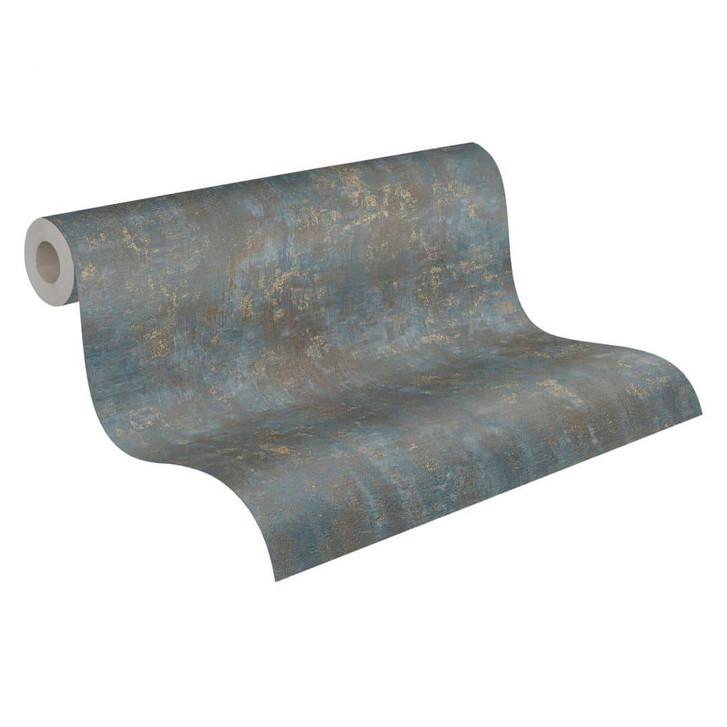 Luxuriöse Vliestapete mit Blattgold-Effekt auf Blauem Grund - Elegante Wandgestaltung