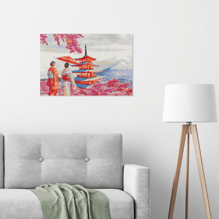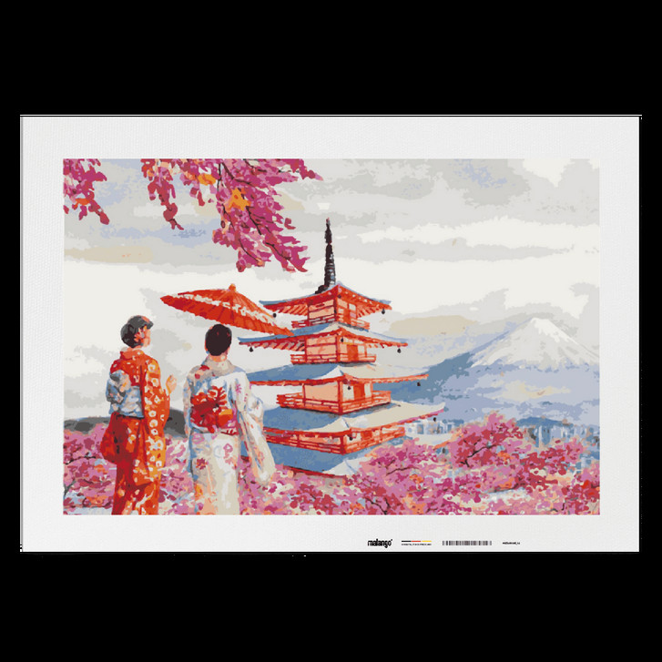 Malen nach Zahlen Leinwandbild - Geishas vor Fuji