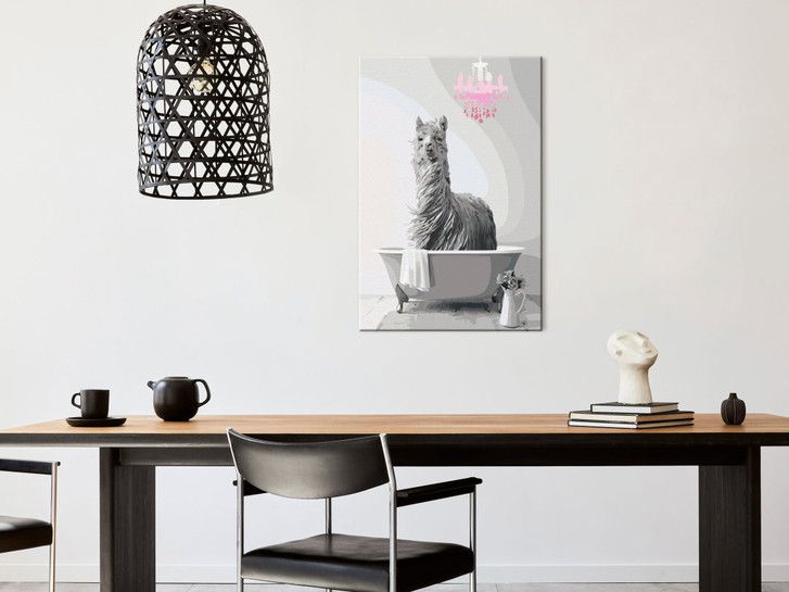 Malen nach Zahlen Leinwandbild - Lama in der Badewanne - 40 x 50 cm - mit Keilrahmen - bespannt