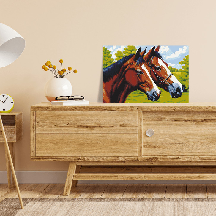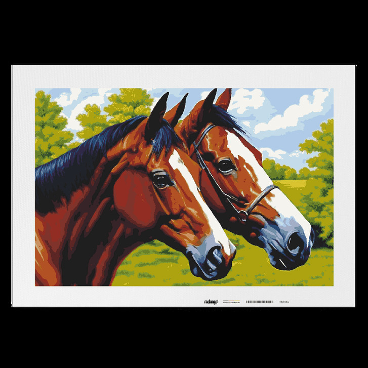 Malen nach Zahlen Leinwandbild - Pferde auf der Koppel