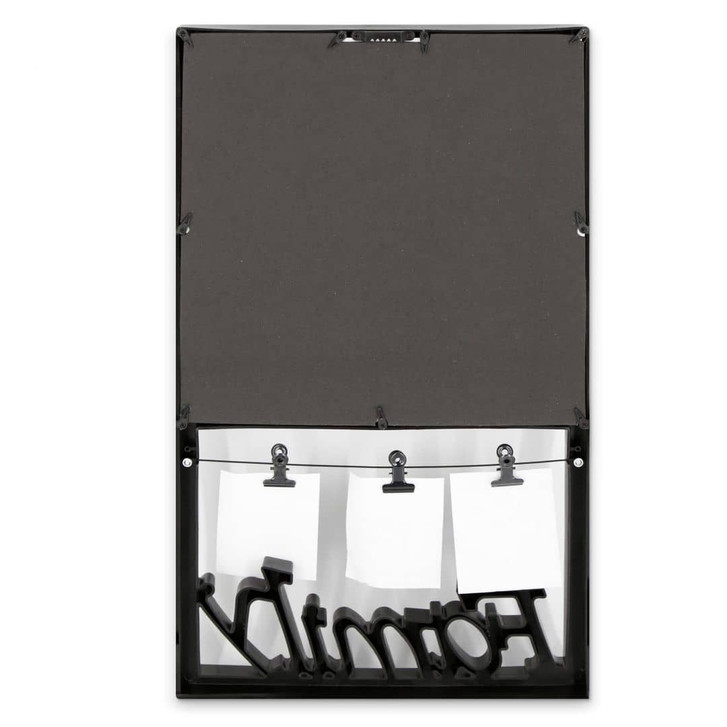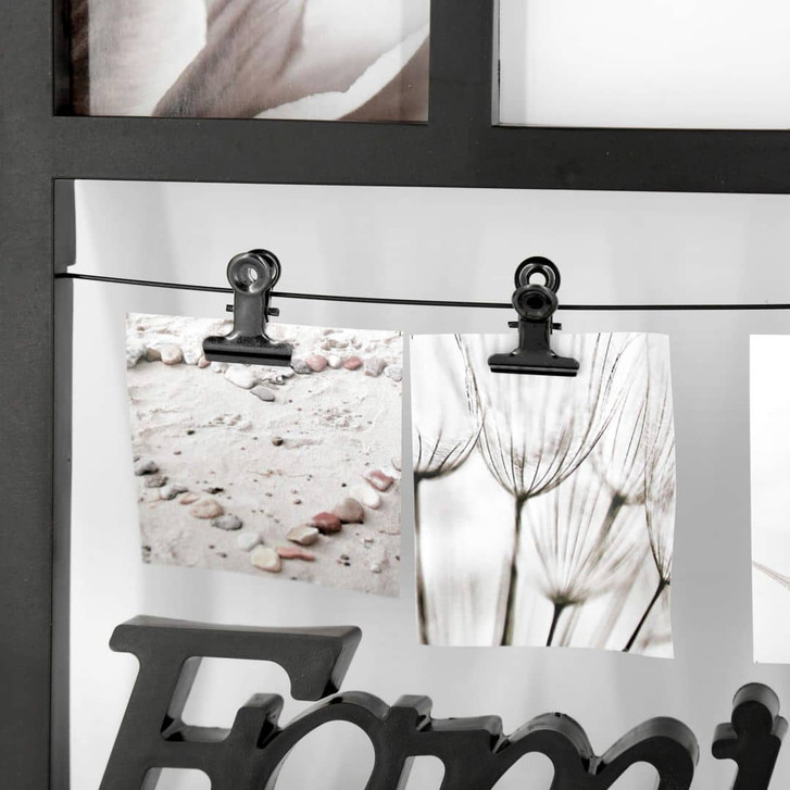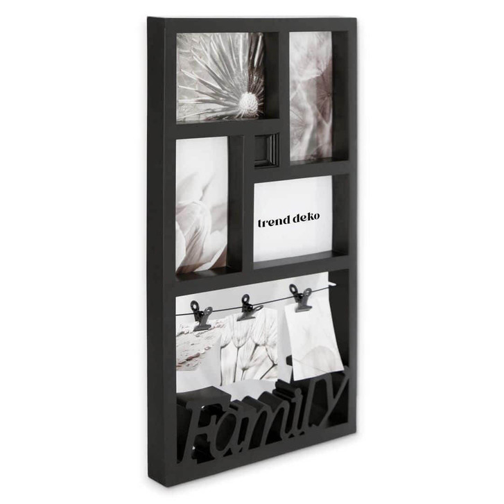 Bilderrahmen-Collage – eine stilvolle Wandgestaltung für deine Lieblingsfotos. Der Vorteil der Collage: Es können mehrere Einzelbilder gleichzeitig gerahmt werden. Und der Rahmen hebt jedes einzelne Bild auf raffinierte Weise hervor. Bedeutende Anlässe wie Hochzeiten, Geburtstage oder Familienfeiern können in der MDF-Wanddekoration verewigt werden. Wähle aus deinen persönlichen Lieblingsmomenten und -personen und erschaffe ein aussergewöhnliches Kunstwerk, das der Wand eine individuelle Note verleiht. Dieser Bilderrahmen bietet Platz für 4 Fotos zum Einlegen und 3 Fotos zum Aufhängen mit den mitgelieferten Clips.