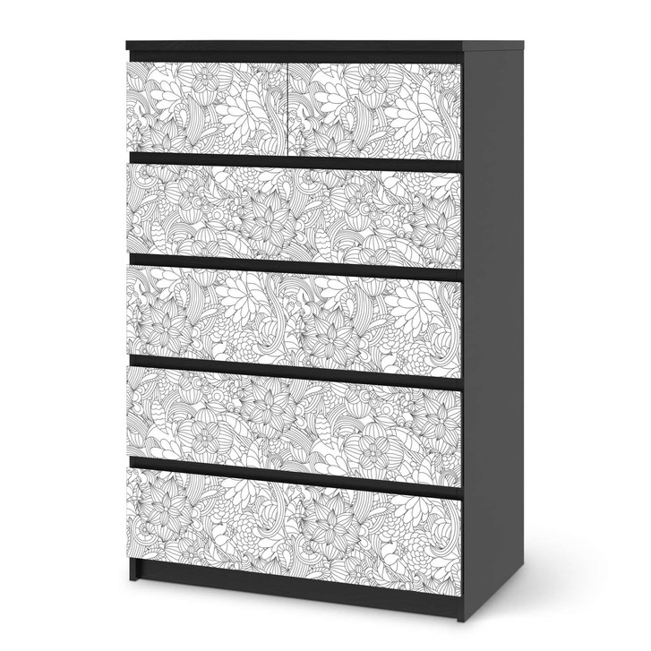 Möbel Klebefolie IKEA Malm Kommode 6 Schubladen (hoch) - Flower Lines 2