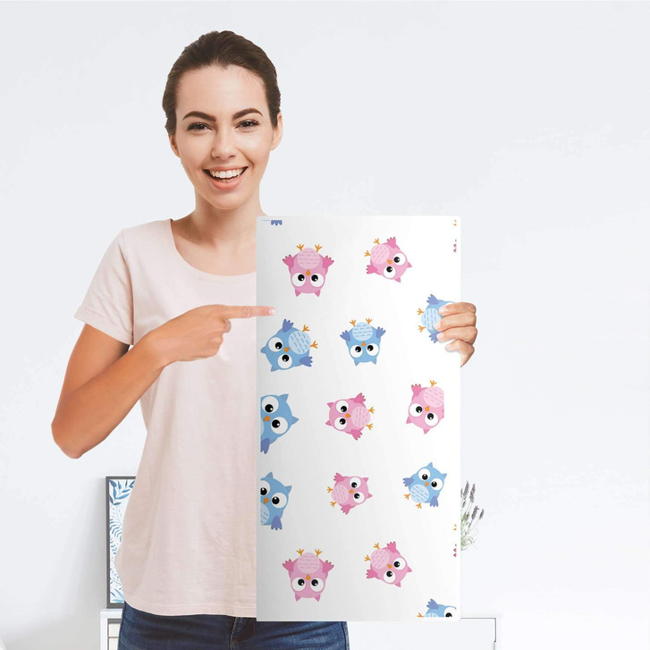 Unsere Möbelfolie Eulenparty für den Alex Schrank ist der Blickfang im Kinderzimmer. Unsere Dekofolien sind hochwertige, selbsthaftende Vinylfolien (seidenmatt) und können dank Bubble-free Technologie kinderleicht verklebt werden.