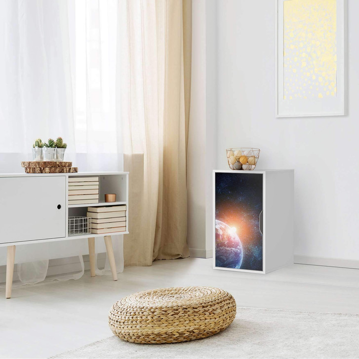 Unsere Möbelfolie Sunrise für den Alex Schrank ist der Blickfang im Wohnzimmer. Unsere Dekofolien sind hochwertige, selbsthaftende Vinylfolien (seidenmatt) und können dank Bubble-free Technologie kinderleicht verklebt werden.