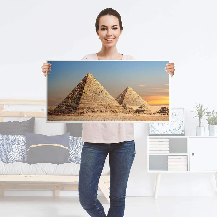 Unsere Möbelfolie Pyramids für das Expedit Regal oben ist der Blickfang in jedem Wohnzimmer. Die Dekofolien sind hochwertige, selbsthaftende Vinylfolien (seidenmatt) und können dank Bubble-free Technologie kinderleicht verklebt werden.
