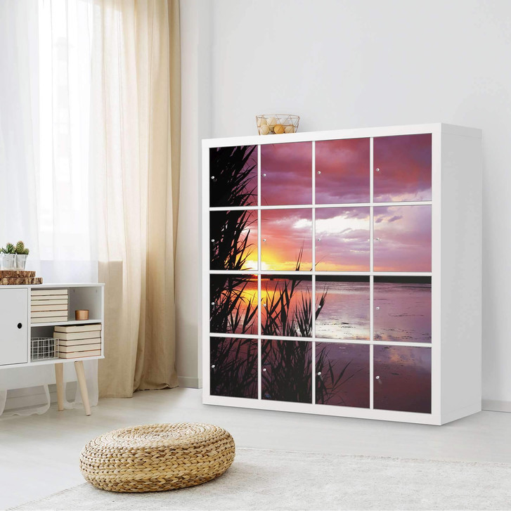 Unsere Möbelfolie Dream away für das Kallax Regal 16 Türen ist der Blickfang in jedem Wohnzimmer. Die Dekofolien sind hochwertige, selbsthaftende Vinylfolien (seidenmatt) und können dank Bubble-free Technologie kinderleicht verklebt werden.