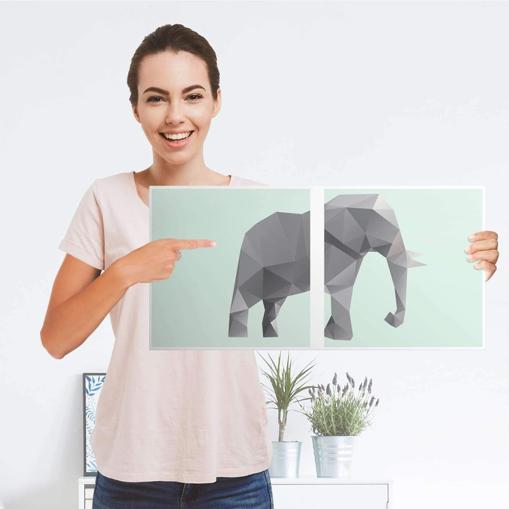 Unsere Möbelfolie Origami Elephant für das Kallax Regal 2 Türen (quer) ist der Blickfang in jedem Kinderzimmer. Die Dekofolien sind hochwertige, selbsthaftende Vinylfolien (seidenmatt) und können dank Bubble-free Technologie kinderleicht verklebt werden.