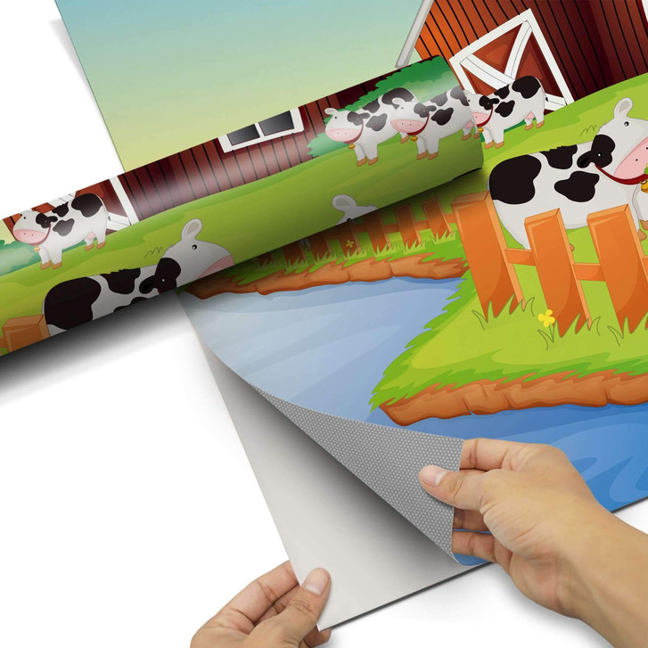Unsere Selbstklebende Folie Cowfarm 2 für den Lack Tisch 78x78cm ist der Blickfang in jedem Kinderzimmer. Die Dekofolien sind hochwertige, selbsthaftende Vinylfolien (seidenmatt) und können dank Bubble-free Technologie kinderleicht verklebt werden.