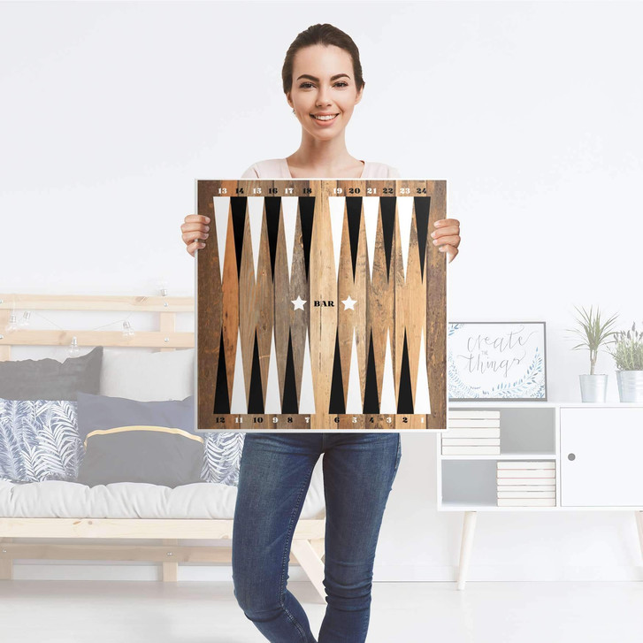 Unsere Selbstklebende Folie Spieltisch Backgammon Schwarz-weiss für den Lack Tisch 78x78cm ist der Blickfang in jedem Wohnzimmer. Die Dekofolien sind hochwertige, selbsthaftende Vinylfolien (seidenmatt) und können dank Bubble-free Technologie kinderleicht verklebt werden.