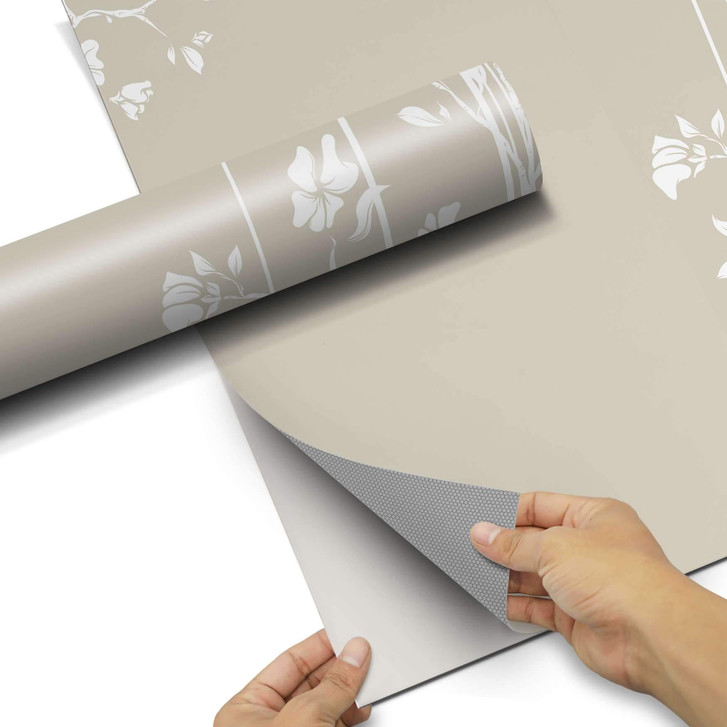 Die Möbelfolie ist selbstklebend, abwischbar und sogar wieder ablösbar.