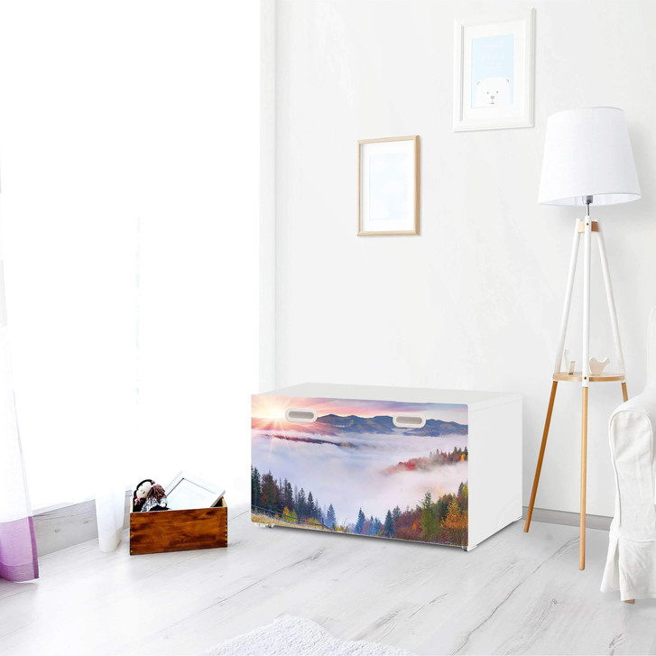 Unsere Möbelfolie Herbstwald für die Stuva / Fritids Bank mit Kasten ist der Blickfang im Kinderzimmer. Unsere Dekofolien sind hochwertige, selbsthaftende Vinylfolien (seidenmatt) und können dank Bubble-free Technologie kinderleicht verklebt werden.