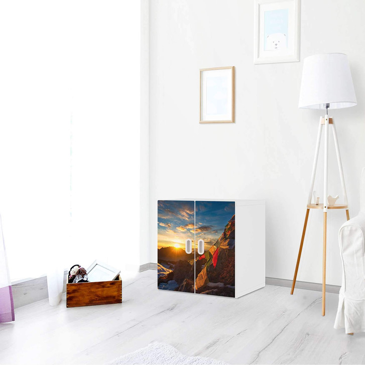 Unsere Selbstklebende Folie Tibet für den Stuva / Fritids Schrank - 2 kleine Türen ist der Blickfang im Kinderzimmer. Unsere Dekofolien sind hochwertige, selbsthaftende Vinylfolien (seidenmatt) und können dank Bubble-free Technologie kinderleicht verklebt werden.