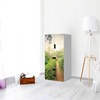 Unsere Möbelfolie Green Tea Fields für die Stuva Aufbewahrung - 3 Schubladen und 2 kleine Türen ist der Blickfang im Wohnzimmer. Unsere Dekofolien sind hochwertige, selbsthaftende Vinylfolien (seidenmatt) und können dank Bubble-free Technologie kinderleicht verklebt werden.