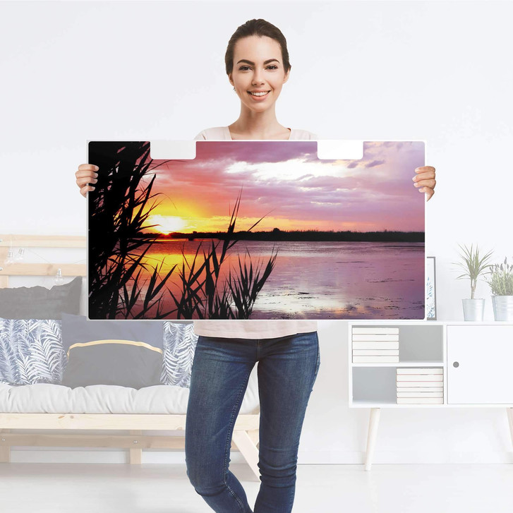 Unsere Möbelfolie Dream away für die Stuva Banktruhe ist der Blickfang im Wohnzimmer. Unsere Dekofolien sind hochwertige, selbsthaftende Vinylfolien (seidenmatt) und können dank Bubble-free Technologie kinderleicht verklebt werden.