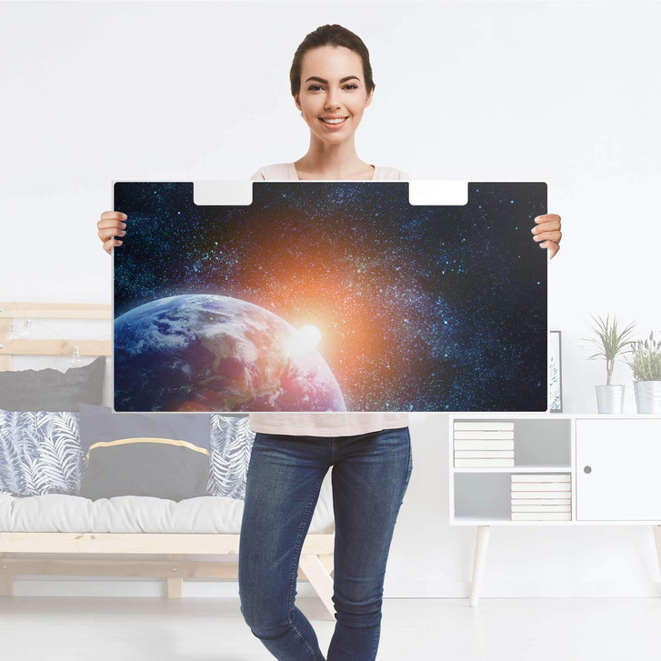 Unsere Möbelfolie Sunrise für die Stuva Banktruhe ist der Blickfang im Wohnzimmer. Unsere Dekofolien sind hochwertige, selbsthaftende Vinylfolien (seidenmatt) und können dank Bubble-free Technologie kinderleicht verklebt werden.