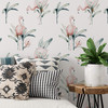 Das farbenfrohe Tapetendesign bringt tropisches Flair in jeden Raum.