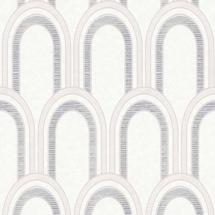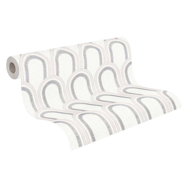 Mustertapete mit Bögen Art-Deco Style Weiss Silber - Grafik-Tapete Retro-Look