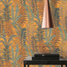 Mustertapete mit Farnblättern Bunt - Florale Tapete Gelb Blau Braun