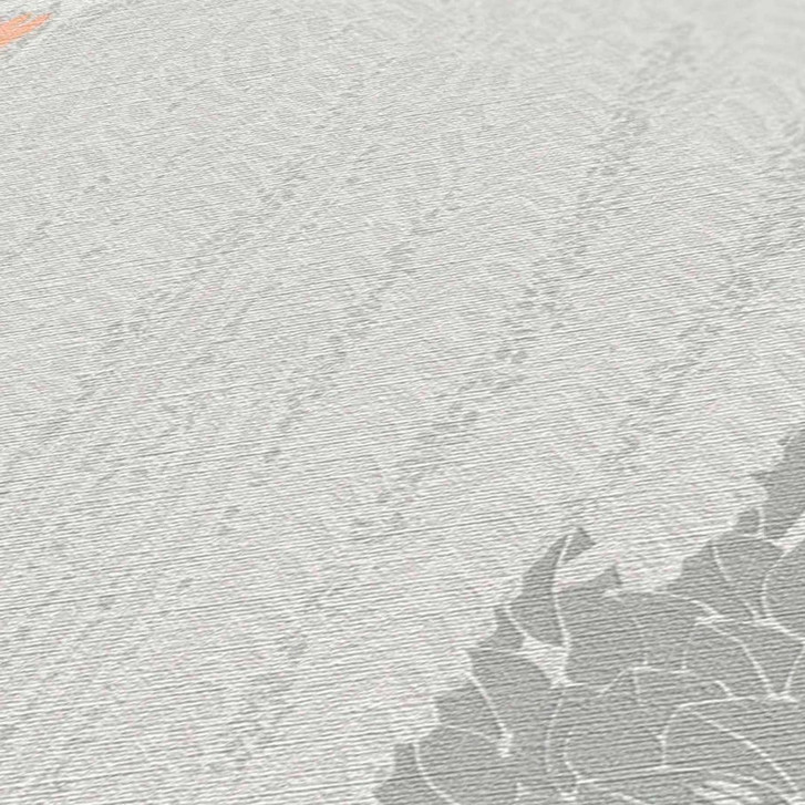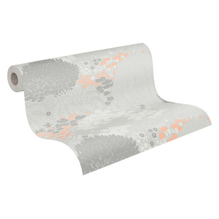 Mustertapete mit Wald-Muster Grau Weiss - Tapete mit Akzenten in Orange
