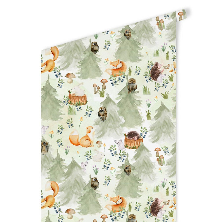 Friedliche Waldtiere als Mustertapete laden zum Entspannen ein