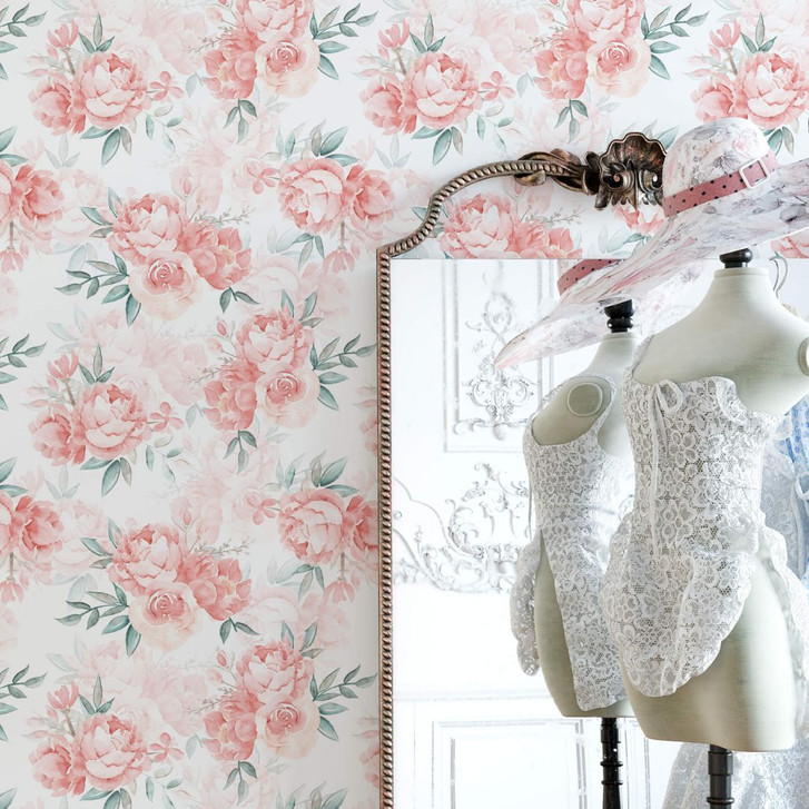 Stilvoll romantische Rosen schmücken die Wand in zarten Farben