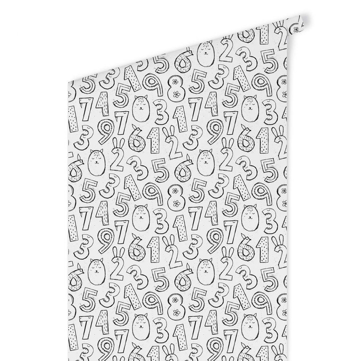 Schmücke das Kinderzimmer mit der Mustertapete „Zahlen 1 x 1“ in kontrastreichem Schwarz-Weiss. Mit den liebevoll gestalteten Zahlen lernt dein Kind im Handumdrehen die Zahlen von 0 bis 9.