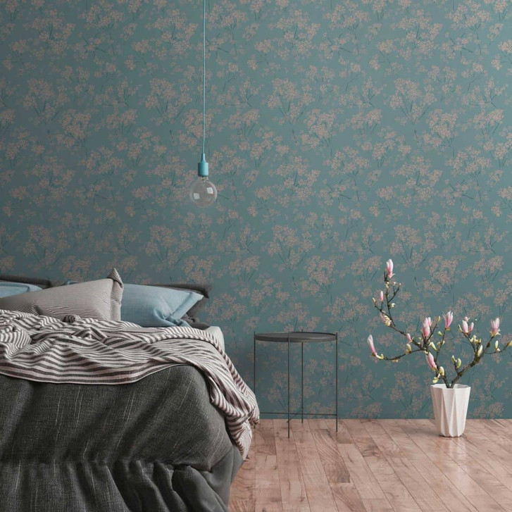 Natur-Tapete Blumen und Blüten Beige Blau - Florale Vliestapete natürlich