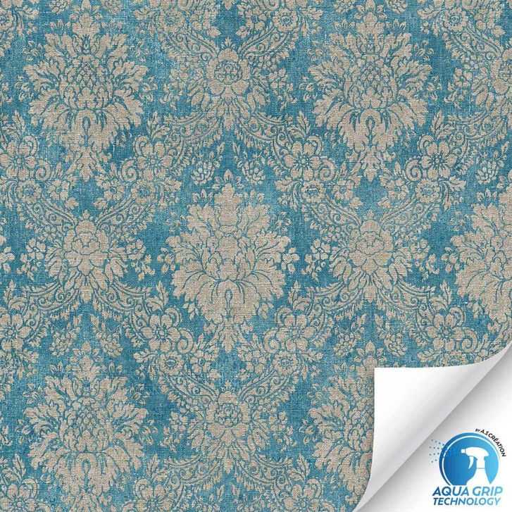 WOW - DESIGNDROP - Stilvolle Barocktapete in Türkis mit Aqua Grip – einfach Wasser sprühen und WOW, sie haftet perfekt!
