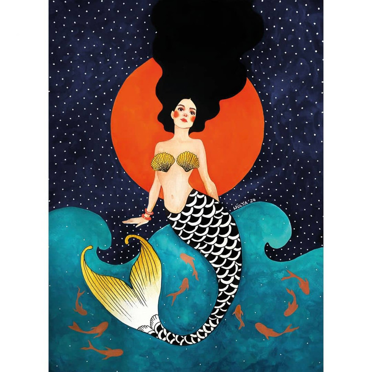 Ozean Fototapete Meerjungfrau im roten Mondlicht - Hülya