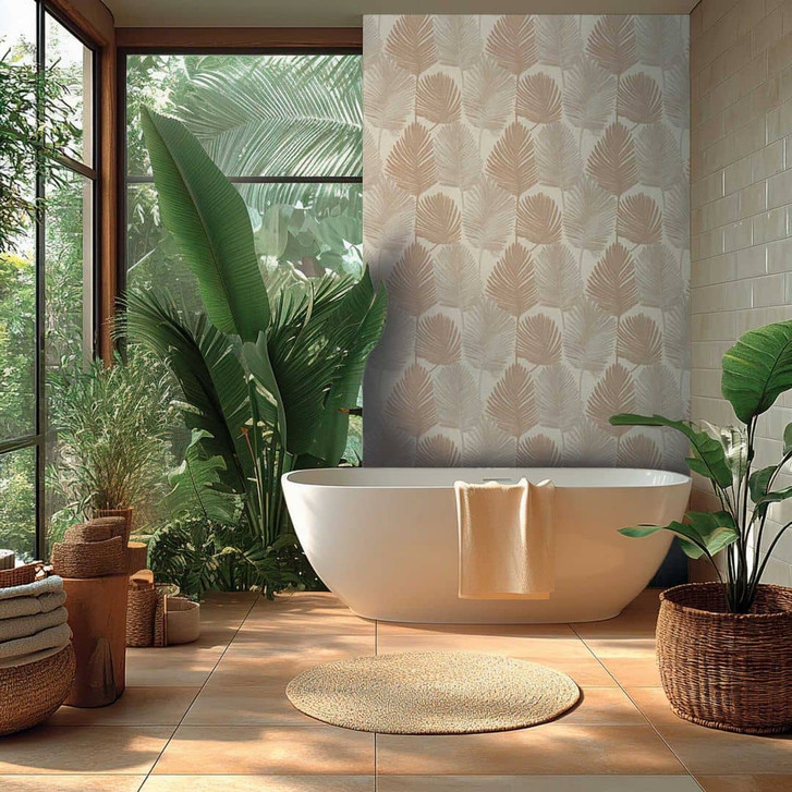 Palmblatt-Tapete Beige Sand – Tropisches Blättermotiv auf Vliestapete