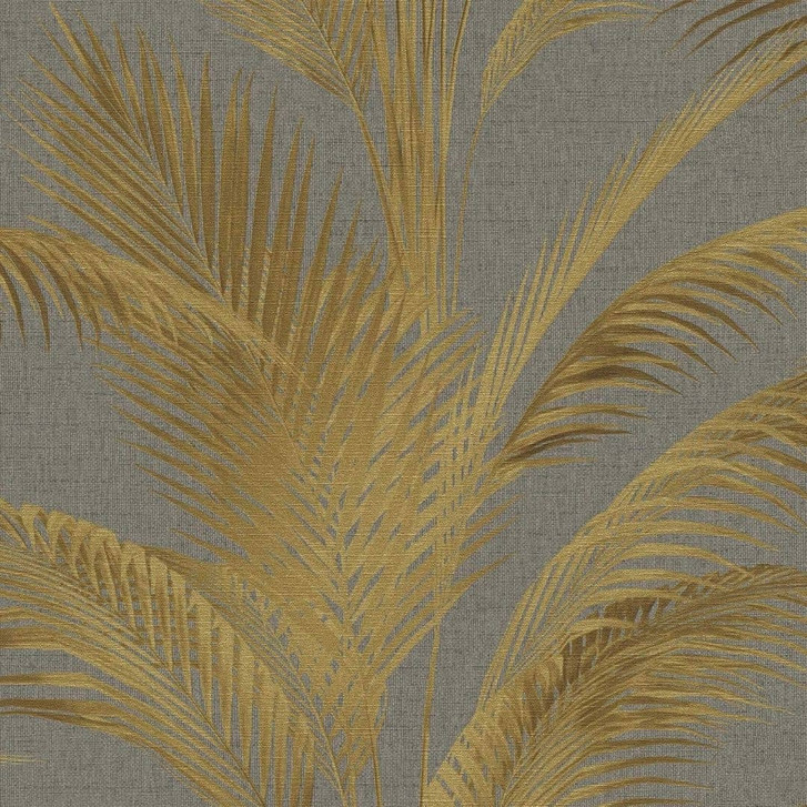 Palmen-Tapete Grau Gold - Vliestapete mit edlem Glanz und tropischem Design
