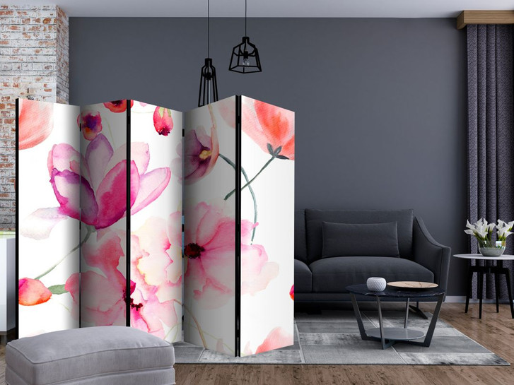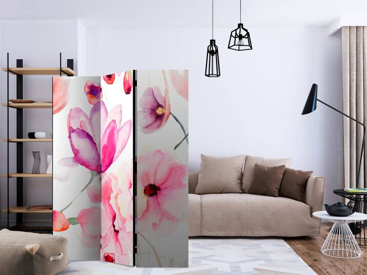 Paravent, Raumteiler freistehend, Trennwand - Blumensinfonie in Rosa