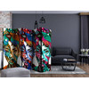 Paravent, Raumteiler freistehend, Trennwand - Bunte Gesichter , 5-teilig - 225 x 172 cm