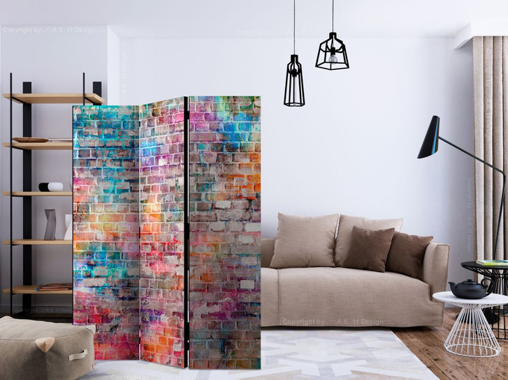 Paravent, Raumteiler freistehend, Trennwand - Bunter Ziegelstein, 3-teilig - 135 x 172 cm