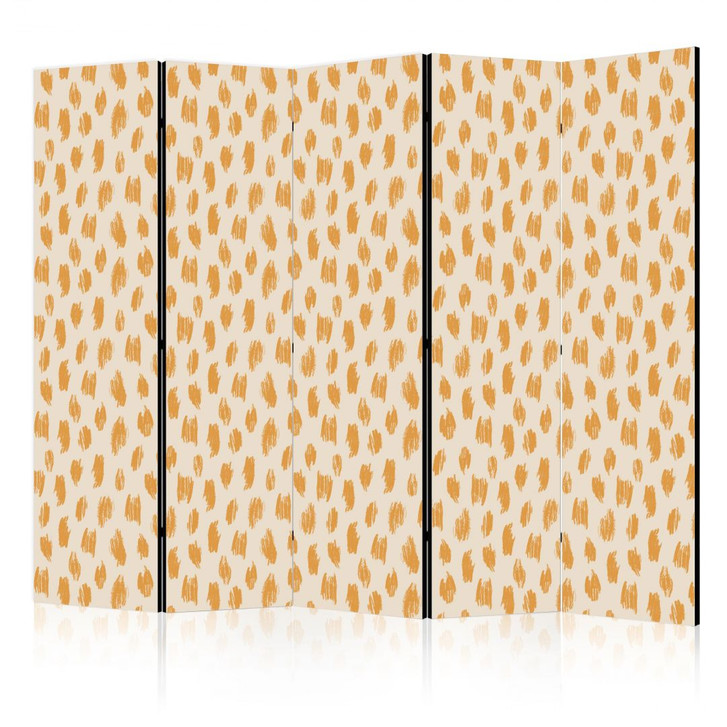 Paravent, Raumteiler freistehend, Trennwand - Drawn Pattern in Spots and Dots in Orange and Ecru