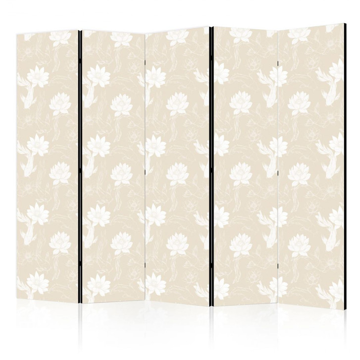 Paravent, Raumteiler freistehend, Trennwand - Fish and Water Lilies on a Delicate Sand-Beige Background