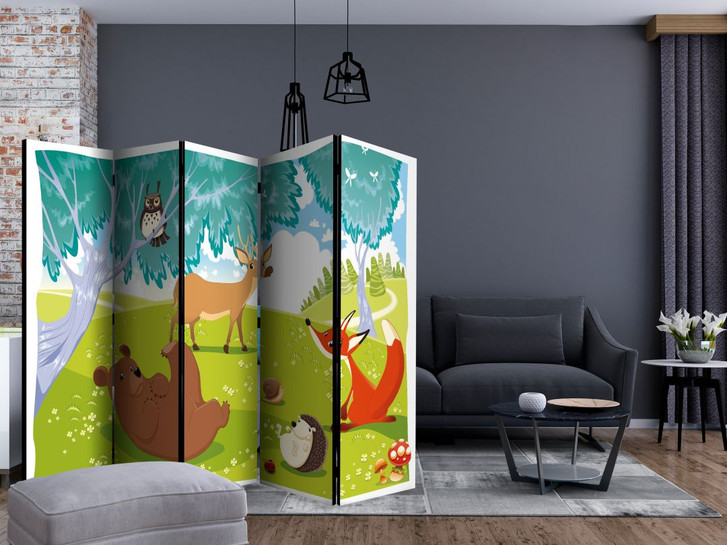 Paravent, Raumteiler freistehend, Trennwand - Lustige Tiere , 5-teilig - 225 x 172 cm