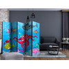 Paravent, Raumteiler freistehend, Trennwand - Oktopus und Hai , 5-teilig - 225 x 172 cm